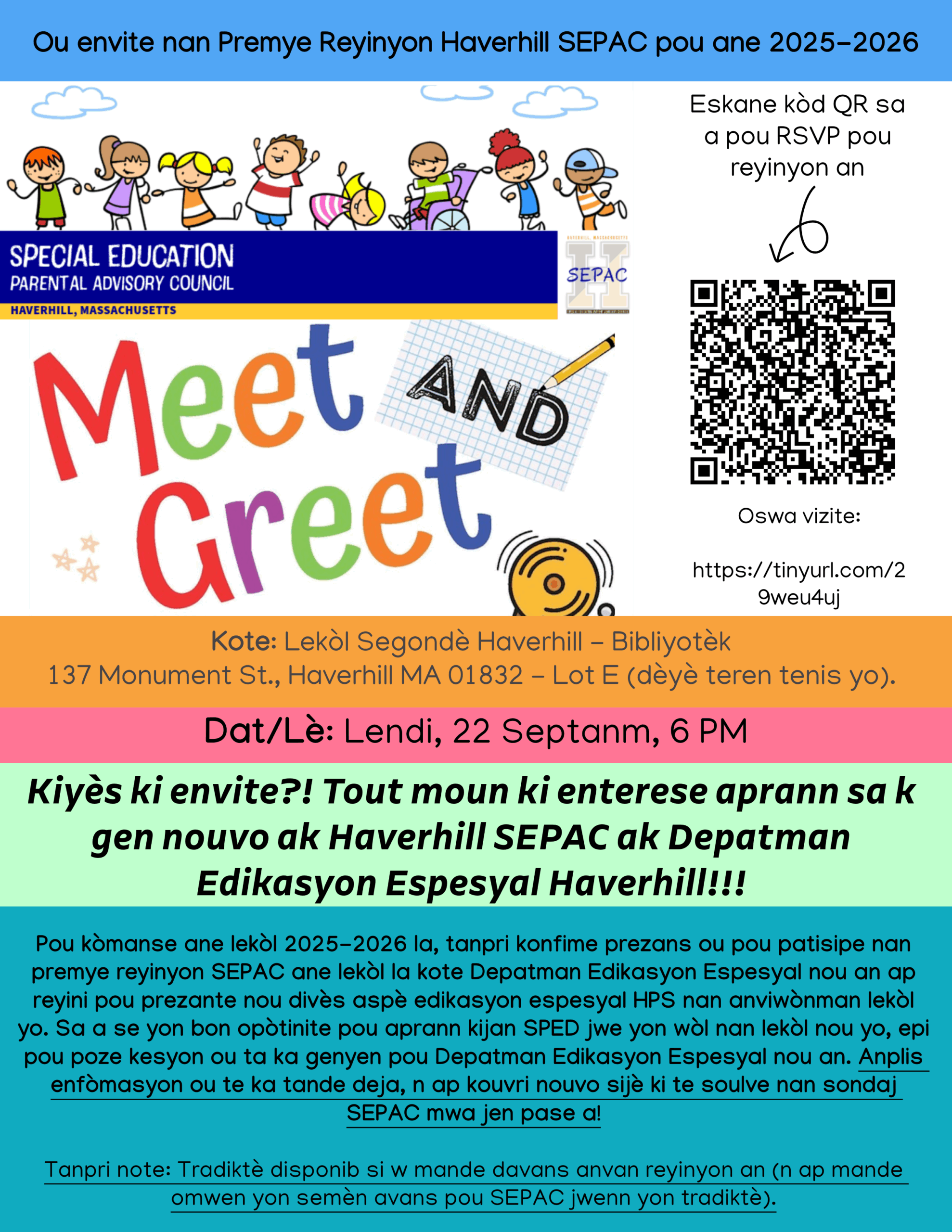 Who is invited?! Everyone with an interest in learning about whats new with the Haverhill SEPAC and Haverhill Special Education Department!!!