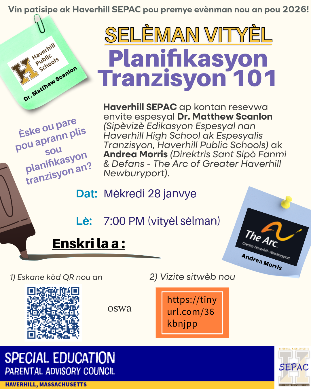 Haverhill SEPAC – Virtual Meeting: Transitions Planning 101, January 28, 2026